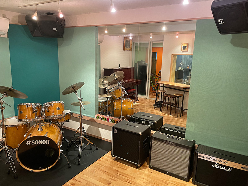 東京城東地区ではなかなかドラムを思いっきり叩く環境がない中で、スリーピースバンドの練習、管楽器同士の練習など、最近ではyoutubeなどの動画撮影、配信などにも利用されています。多岐に渡るご利用お待ちしております。