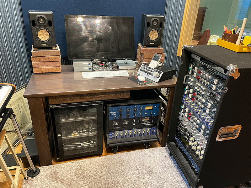 ボーカル、コーラス、弦カルテット、ブラスセクションの録音。ドラムベースギターでの同時録音をプロツールス、UniversalAudioApollo16で録音します。 ノイマンU87aiを中心とした豊富なマイク類Neve,Focusrite,SSL等を駆使して録音します。